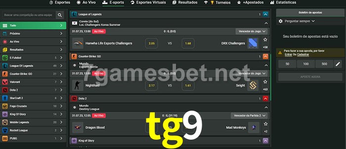 O tg9 oferece uma grande seleção de opções de apostas em e-sports com probabilidades competitivas